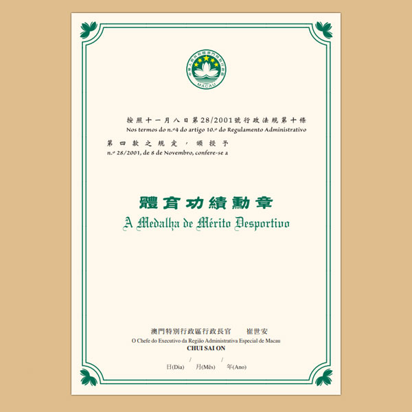 - Medal is awarded to recognize individuals or entities who have achieved outstanding results in international, regional or national sports events or are deserving of awards in sports.