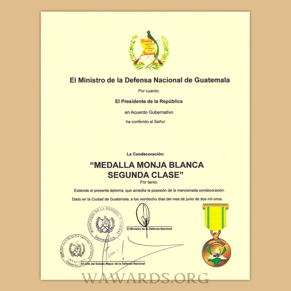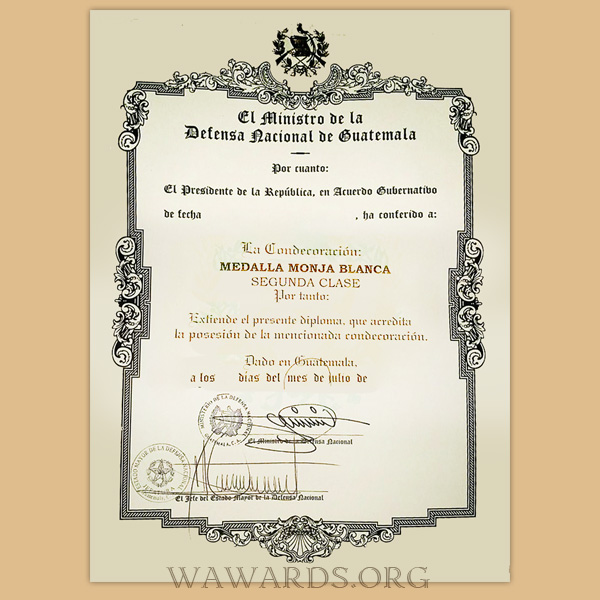 - Medal is awarded to members of the Army who, through distinguished actions in the line of duty or while representing the Armed Forces abroad, distinguish themselves through their outstanding merits that benefit both the Army and the Republic of Guatemala; to both foreign civilians and military personnel who, demonstrate actions of brotherhood, friendship, and loyalty to the Guatemalan Army.