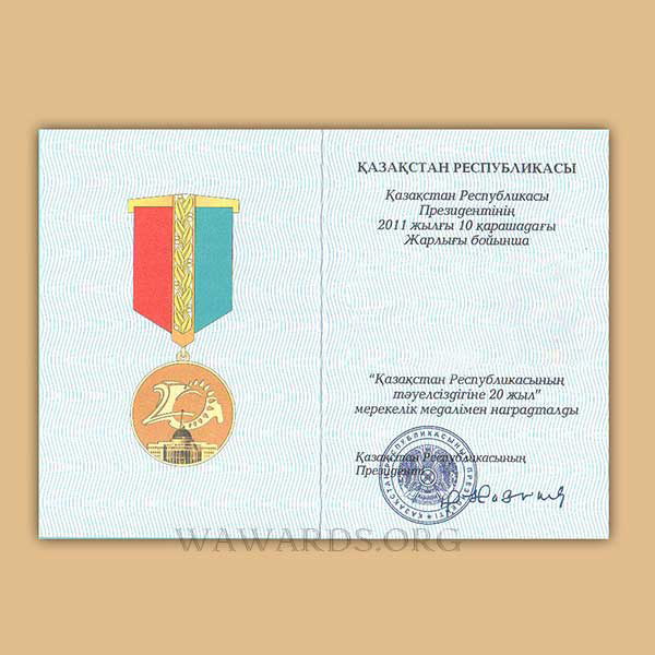 - Medal was awarded to citizens of the Republic of Kazakhstan and foreign citizens who have made a significant contribution to the formation of statehood, strengthening of sovereignty and the socio-economic development of the Republic of Kazakhstan.