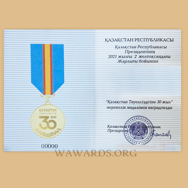 - Medal was awarded to citizens of the Republic of Kazakhstan and foreign citizens who have made a significant contribution to the formation of statehood, strengthening of sovereignty and the socio-economic development of the Republic of Kazakhstan.