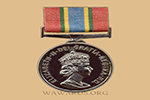 - The medal shall be of a circular shape with a diameter of 38 millimetres and shall have, on the obverse in the centre, a side view of Her Majesty Queen Elizabeth II from the shoulder up. The words “ELIZABETH II DEI GRATIA REGINA. F-D” shall appear around the top half of the circumference. The reverse shall carry the words “FOR MERITORIOUS SERVICE RBDF”. The medal shall be suspended from the ribbon by a horizontal bar.