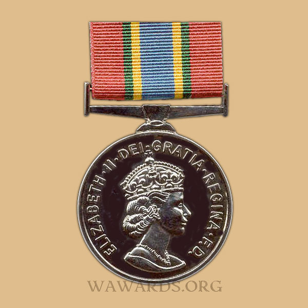 - The medal shall be of a circular shape with a diameter of 38 millimetres and shall have, on the obverse in the centre, a side view of Her Majesty Queen Elizabeth II from the shoulder up. The words “ELIZABETH II DEI GRATIA REGINA. F-D” shall appear around the top half of the circumference. The reverse shall carry the words “FOR MERITORIOUS SERVICE RBDF”. The medal shall be suspended from the ribbon by a horizontal bar.
