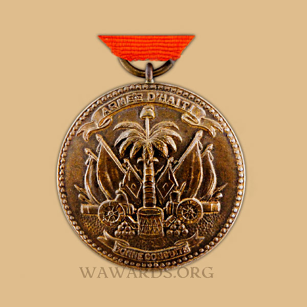 There are two types of medal, for the Haitian Army and the Haitian Guard.