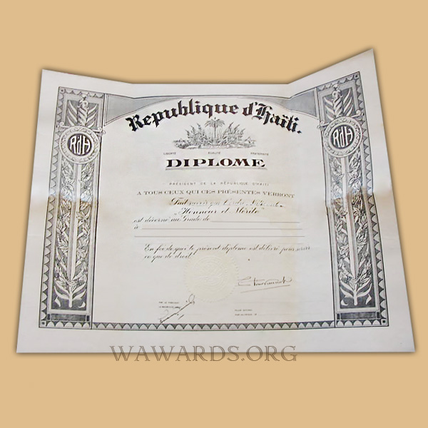 - Order is awarded to Haitians and foreign nationals for outstanding diplomatic, judicial, civil and military services to the state.