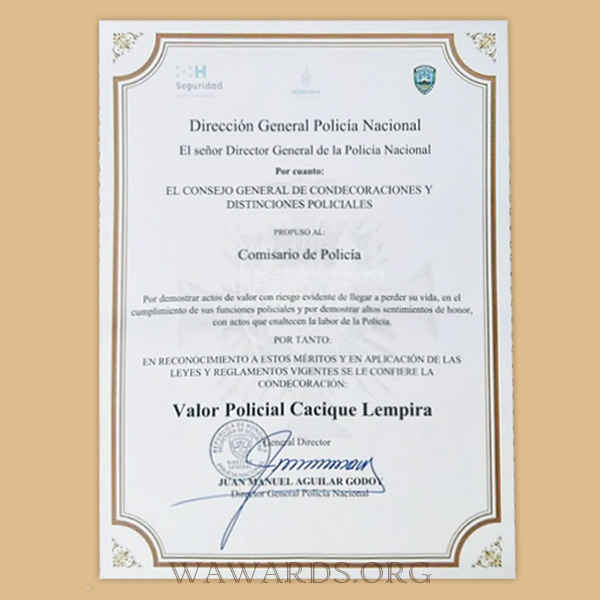 HND019  Condecoración al Valor Policial "CACIQUE LEMPIRA"