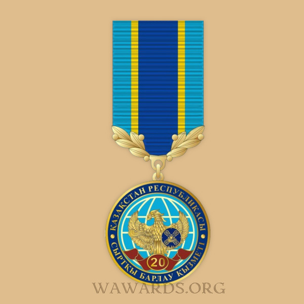 • Medal is awarded to employees of the Foreign Intelligence Service of the Republic of Kazakhstan "Syrbar" who have received positive service reviews and who perform their official duties in an exemplary manner, who have at least 20 years of service, foreign intelligence retirees, and other individuals who have made a significant contribution to activities in the field of foreign intelligence of the Republic of Kazakhstan.