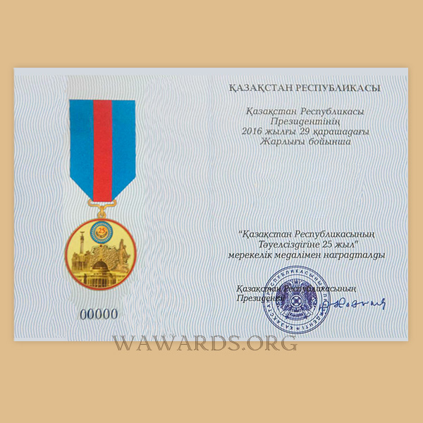 KAZ089 «Қазақстан Республикасының тәуелсіздігіне 25 жыл» медалi