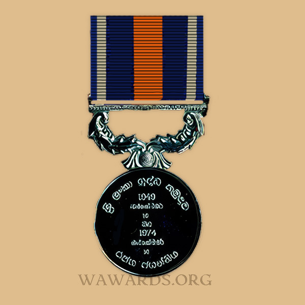 - Medal is awarded to all ranks of the Regular and Volunteer Forces of the Army including officers of Sri Lanka Cadet Corps, and civilians on the authorized establishment of the Army, provided that all those to whom the medal is awarded shall have completed a minimum of 10 years of service at any time during the period of 10 October 1973 to 9 October 1974, being the year of the 25th Anniversary of Sri Lanka Army.