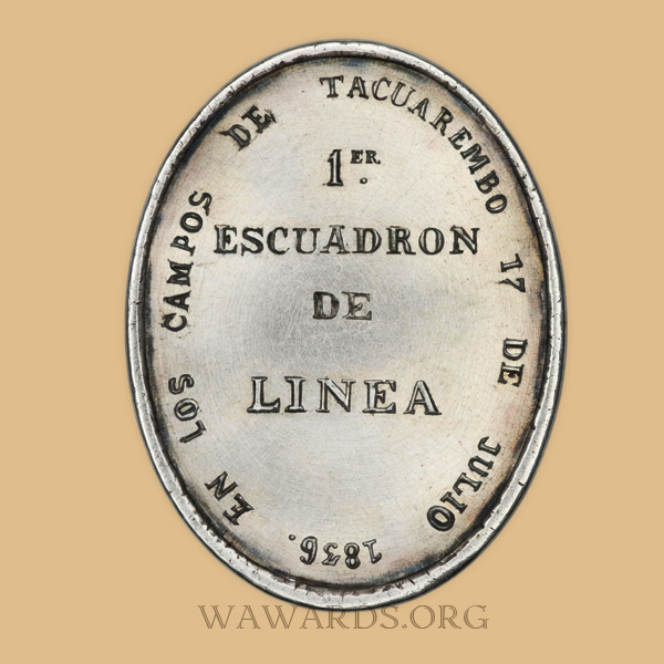 - Medal was awarded to officers and mans taking part in the Battle of Tacuarembo on 17 July 1836.