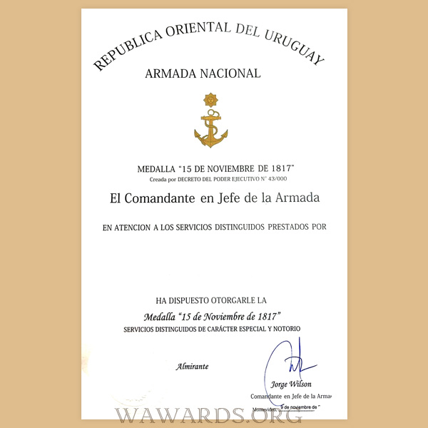 - Medal is awarded by the Commander-in-Chief of the Navy, to military and civilians, whether national or foreign, military units, or public or private institutions for merits to the National Navy.