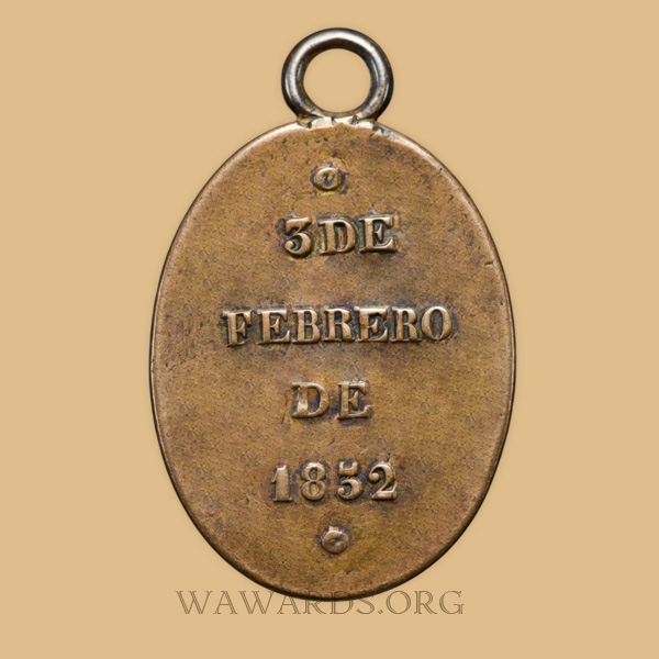 • Medal was awarded to officers and mans taking part in the Battle of Caseros on 3 February 1852.