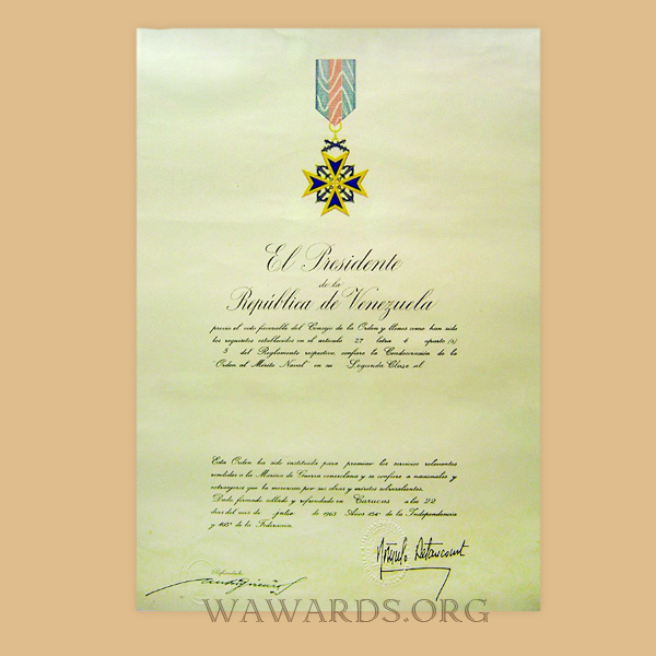 - Order is awarded to Venezuelans and foreigners for the services rendered to the National Naval Force.