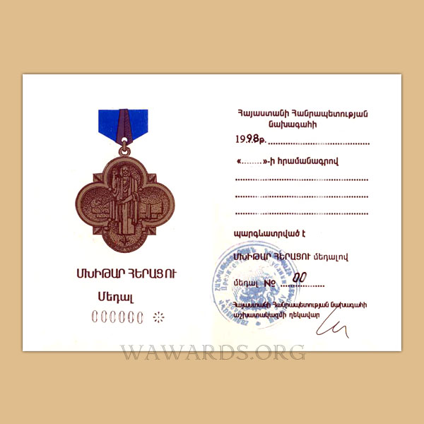 - Medal is awarded for services aimed at promotion of the health and medical sectors in the Republic of Armenia and high professional and practical work, as well as for significant charitable activities.