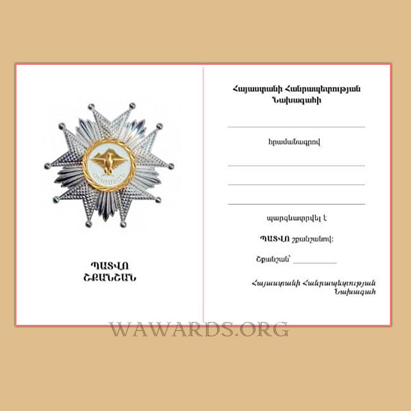 - Order is awarded for notable services in protecting state and national interests of the Republic of Armenia and establishment of independence and democracy, as well as for significant contribution to building, strengthening and promoting friendship and reinforcing peace between peoples.